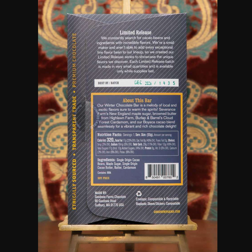 Single Origin Cacao Beans, Maple Sugar, Single Origin Cocoa Butter, Butter, Cardamom