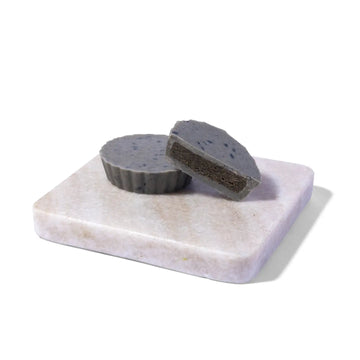 Each cup features a rich chocolate shell crafted from premium Indian black sesame seeds blended with organic cocoa butter and sea salt, paired with a creamy, nut-free sunflower butter and aromatic Taiwanese black sesame powder filling. This blend is naturally sweetened with organic raw honey, offering a perfect balance of savory and sweet flavors.