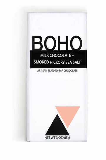 Escape the ordinary and savor the extraordinary with this award-winning Milk Chocolate + Smoked Hickory Sea Salt Chocolate. Subtle fruit and nutty notes from organic South American cacao combined with lightly smoked hickory sea salt that has been aged to bring out an aromatic sweet and savory taste. It’s not just a treat; it's a journey into a world of sophistication and indulgence. This bar is an International Chocolate Awards winner, and a Silver Medal Academy of Chocolate Awards winner.