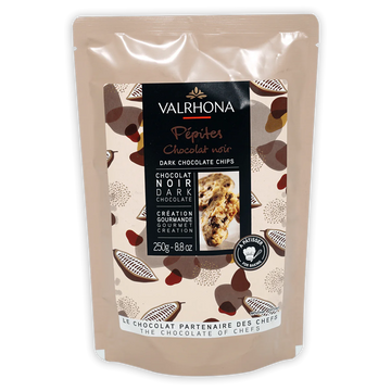 These Valrhona dark chocolate chips feature a high cocoa content and balanced flavor, providing intense chocolatey notes to your creations. Easy to use, dark chocolate chips are perfect in all preparations where you want to bring a chocolate taste as well as a smooth texture.