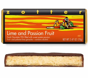 The chocolate for true aficionados: inspired by the creative Peruvian cuisine, Zotter is pairing the wonderful creaminess of sweet potatoes and corn as a base with the cheery and colorful fruitiness of limes and refreshing bursts of passion fruit. Enrobed in a sumptuous dark chocolate whose cacao flavors balance the fruit in the filling.