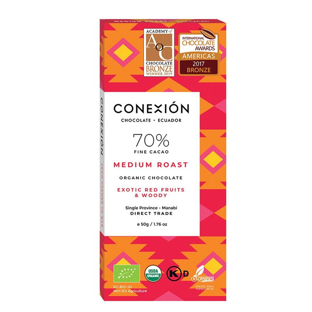 A bar for chocolate lovers. This 70% dark chocolate embodies the flavors of exotic red fruits and aromatic woods with notes of tannin and a long-lasting berry finish.