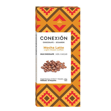Conexión's luxuriously creamy milk chocolate, rich with caramel flavor is the ideal backdrop for the addition of Ecuadorian coffee. The bitterness of the coffee is balanced with the creamy sweetness of milk chocolate to create the best mocha latte in the form of a bar.