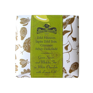 Tarragon, peppermint, Japanese green tea, lemon oil and walnut oil are added to a white chocolate which means this bar is a surprising green.