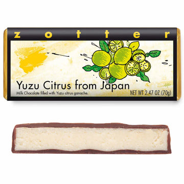 Part tangerine, part lime with a wicked flavor of sun-ripened tangerines – that’s Yuzu, the top chefs’ new trendy ingredient. Zotter uses white chocolate, Yuzu juice from Japan, lovely tangerine and a bit of lemon juice to create a fruity, refreshing chocolate ganache that tastes like summer sun, and all of this is covered in a milk chocolate coat with a 50% cocoa content.